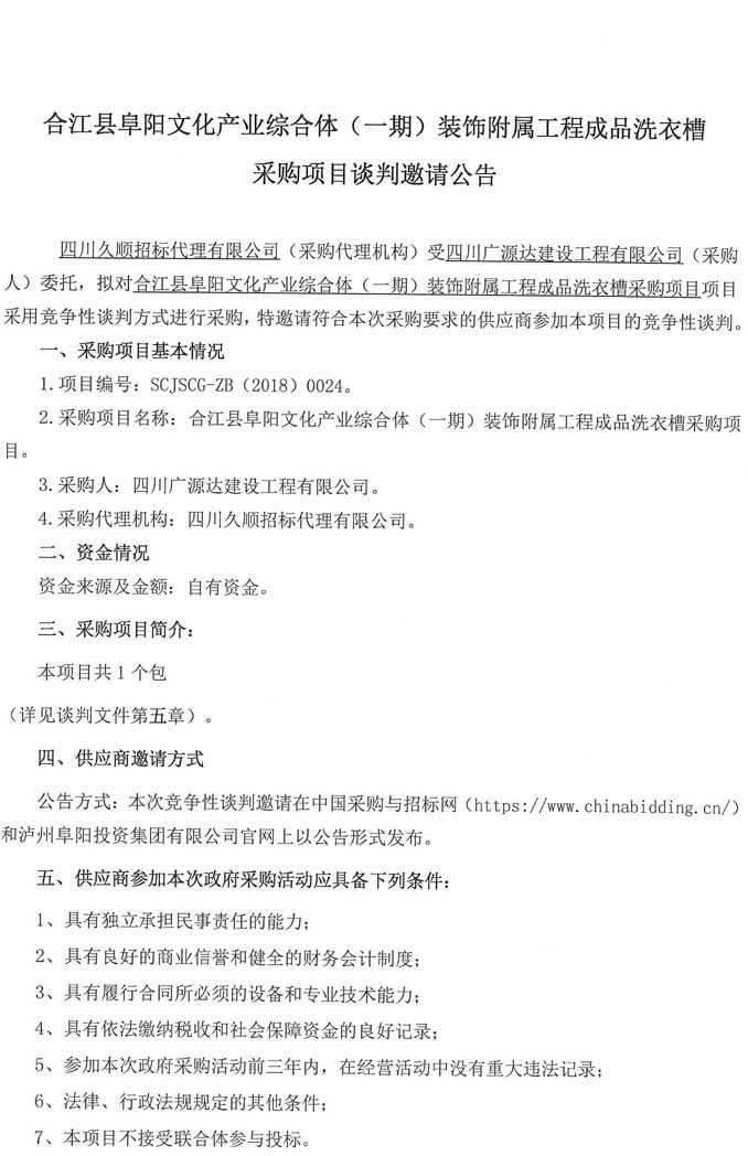 合江縣阜陽文化產(chǎn)業(yè)綜合體(一期)裝飾附屬工程成品洗衣槽 采購項(xiàng)目談判邀請公告.doc